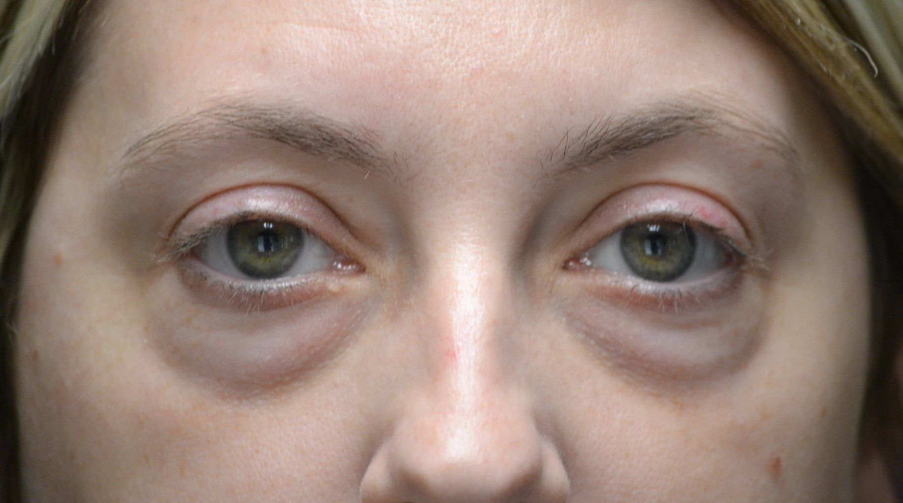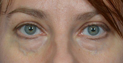 Many patients do not see lower eyelid bags until their late thirties or early forties. This patient has had them her whole life.