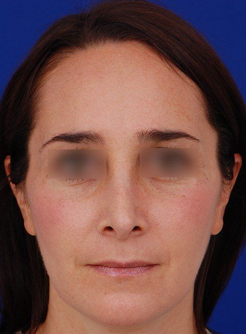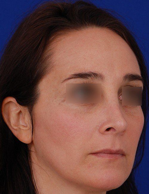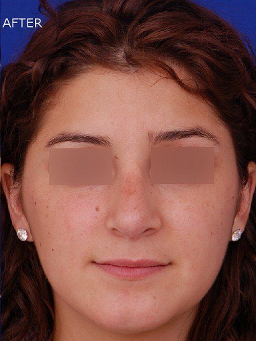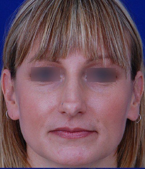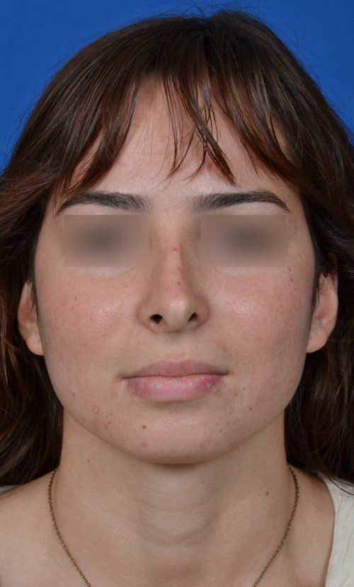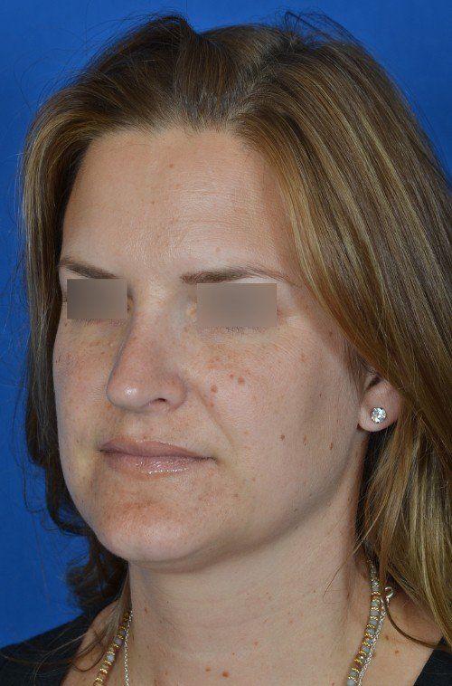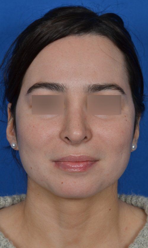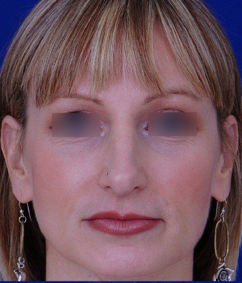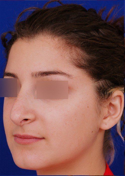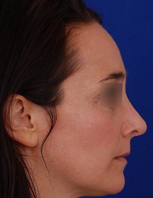 This patient requested revision rhinoplasty primarily to straighten her nose on front view and de-project the nasal tip from the side. Also, a severe fracture of her nasal septum was repaired and the turbinates were reduced to improve nasal breathing.