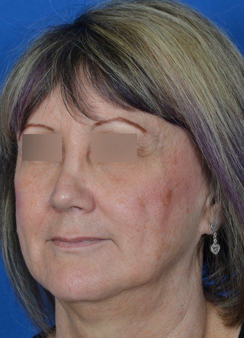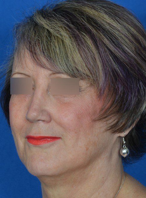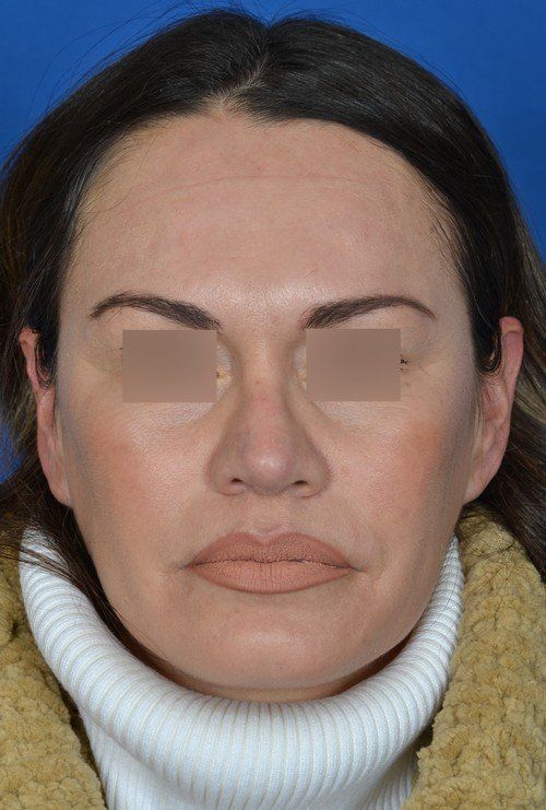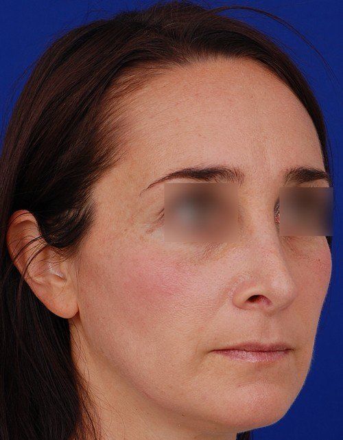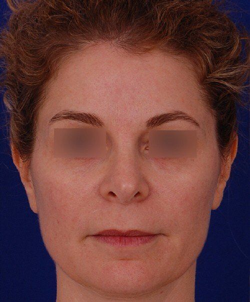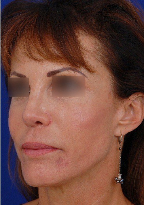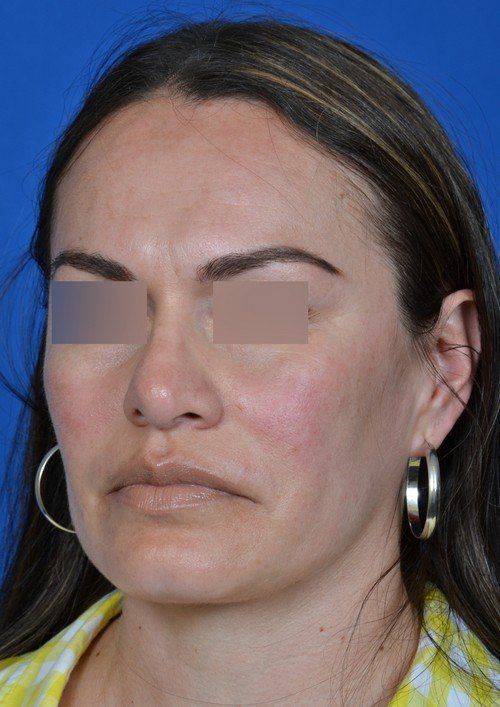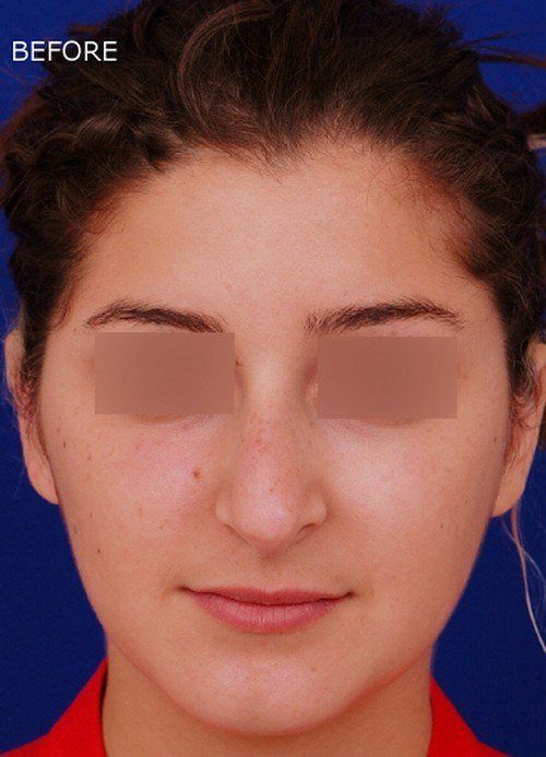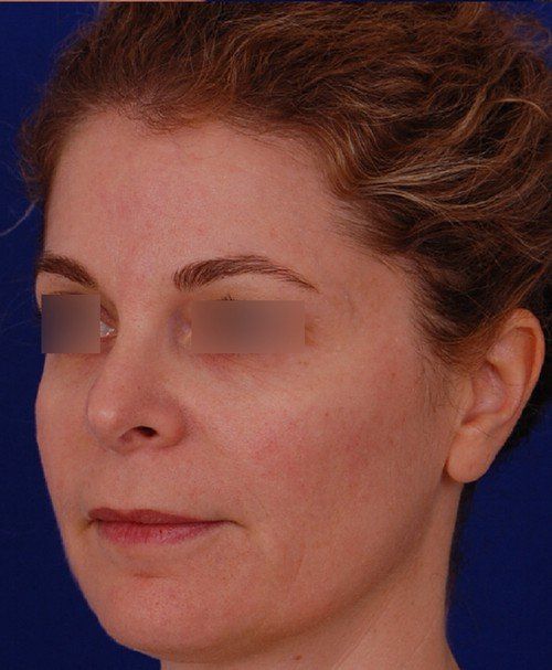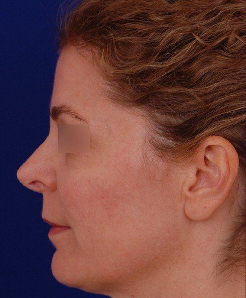 This patient requested revision rhinoplasty primarily to straighten her nose on front view and de-project the nasal tip from the side. Also, a severe fracture of her nasal septum was repaired and the turbinates were reduced to improve nasal breathing.