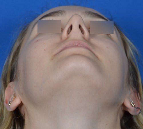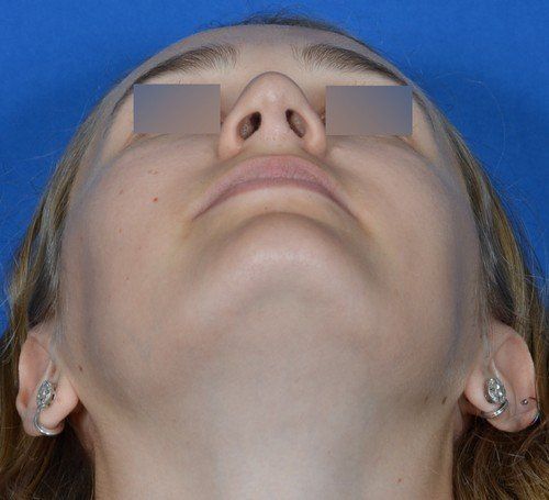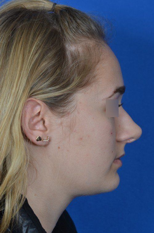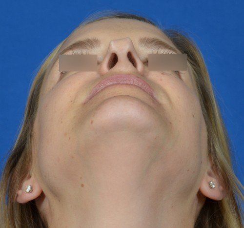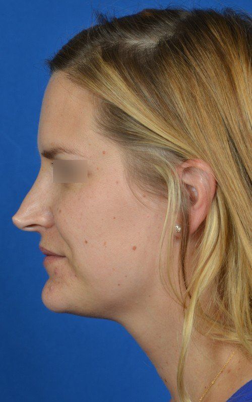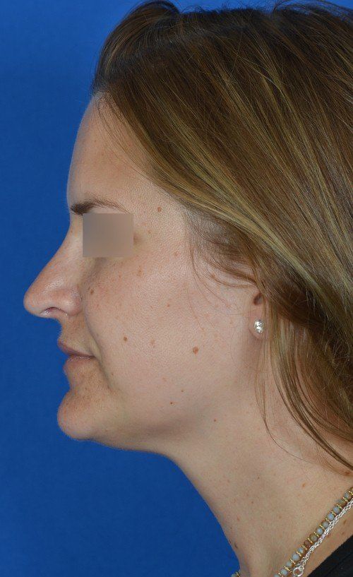After previous rhinoplasty elsewhere, this patient did not like how much her nostrils showed from the side. She elected for a minor revision procedure.