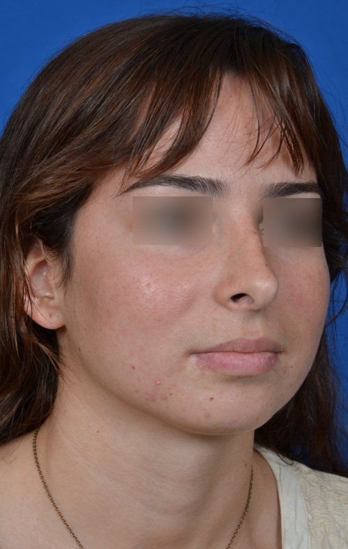 Following a previous rhinoplasty, this patient disliked the irregularities at the tip of her nose and the unnatural transition between the bridge and tip of her nose, mainly seen on the oblique view. Revision rhinoplasty was performed to smooth the transition from the tip to the bridge of the nose.