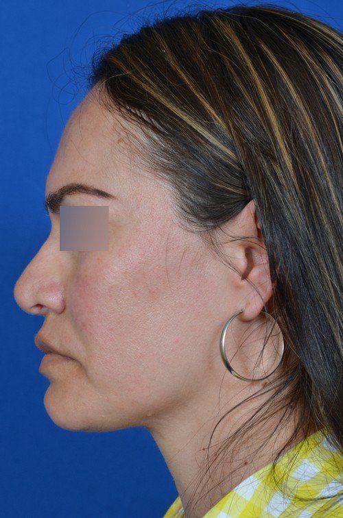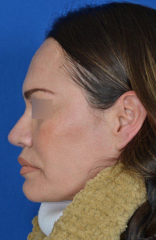 This patient wanted revision rhinoplasty to bring the tip of her nose down and closer to her face. She also wanted to remove a hump and straighten her nose.