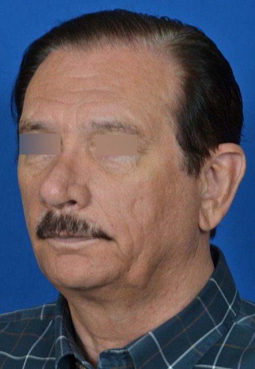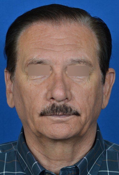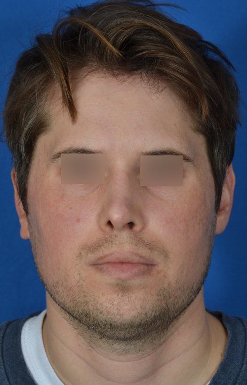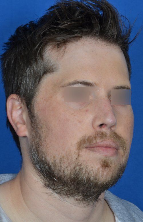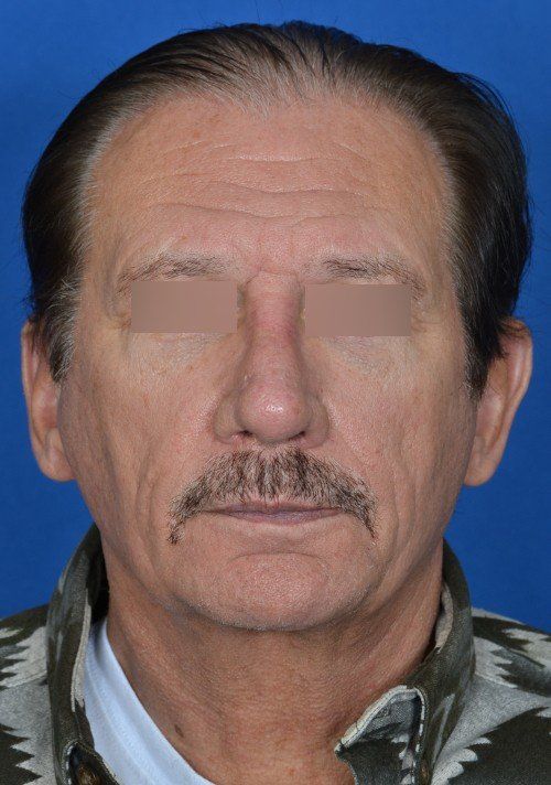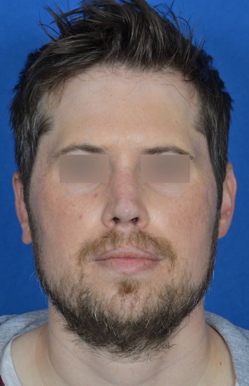 A patient who had undergone multiple revisions was concerned with his crooked nose. Rib cartilage was used to straighten the nose.